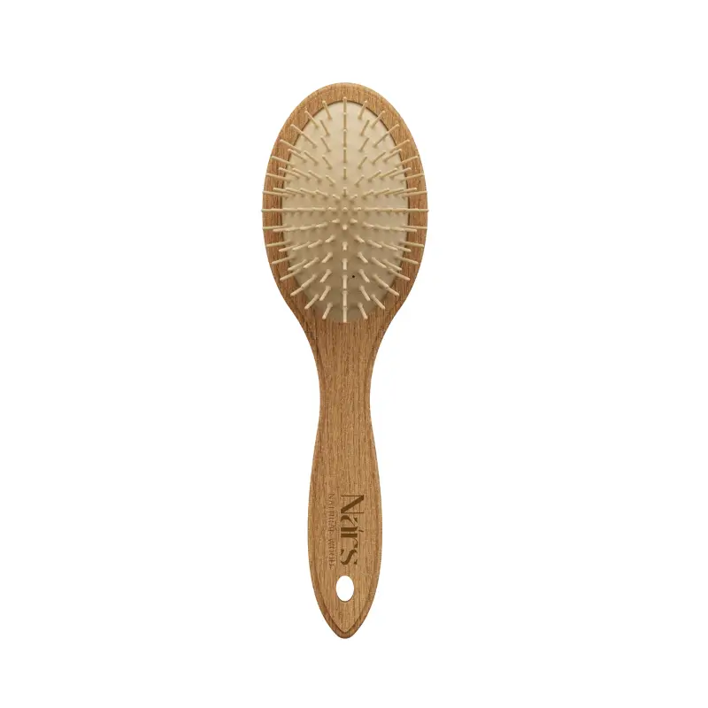 برس چوبی بیضی نارس با طراحی کلاسیک و کارآمد، برای باز کردن گره موها و شانه کردن روزانه مناسب است. شکل بیضی این برس باعث میشود تا سطح بیشتری از مو را در هر بار شانه کردن پوشش دهد.